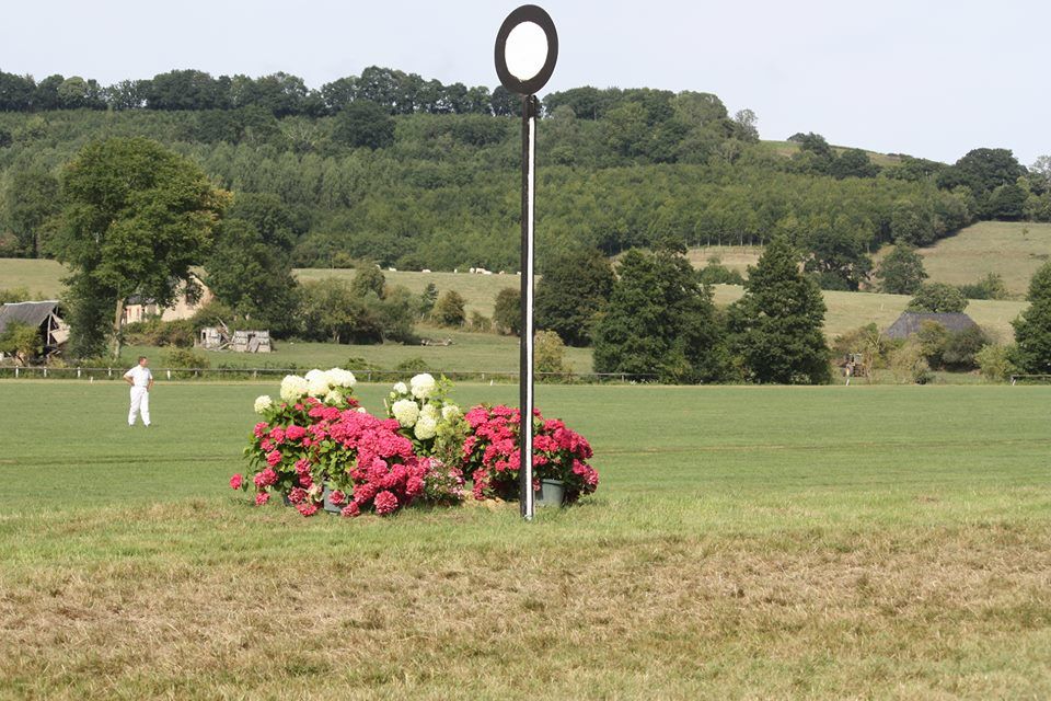 Pas de prise de tête à Dozulé. Un simple poteau noir et blanc surmonté d’un disque noir (plutôt rare comme couleur de disque).