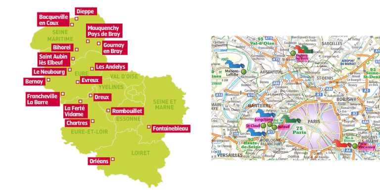 9 départements (Seine-Maritime, Eure, Eure-et-Loir, Yvelines, Val d’Oise, Loiret, Seine et Marne, Hauts de Seine et Paris)